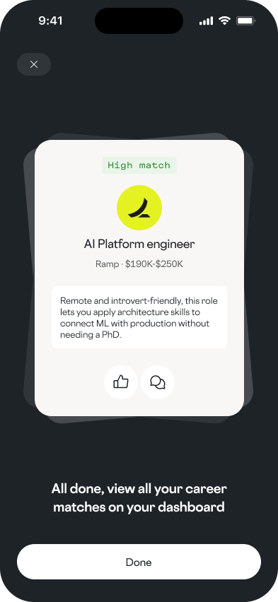 We match you with real roles that fit your skills, goals, and personality.