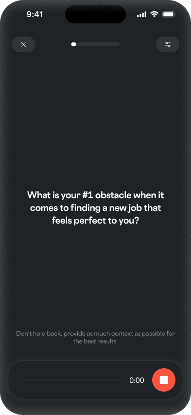 Talk or text with our custom guided interview designed to learn your skills, interests, goals, lifestyle, and deal-breakers.